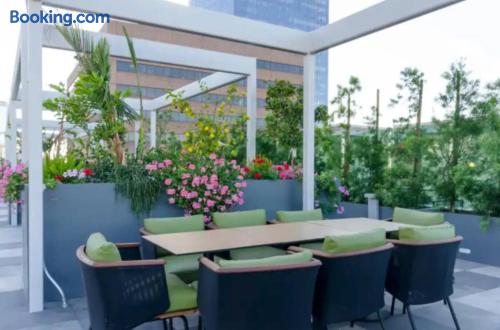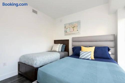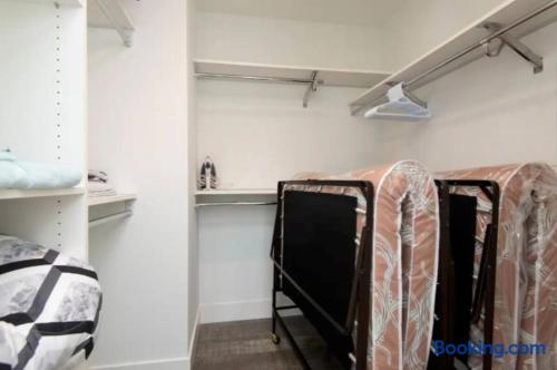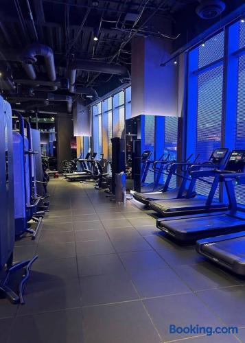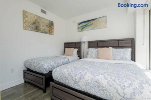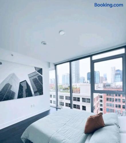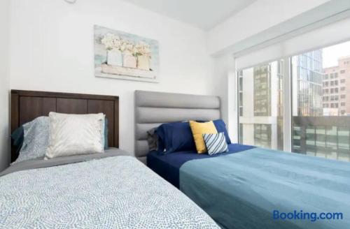 This elegant 3-bedroom, 2-bath apartment features abundant natural light, spectacular city views, a lively atmosphere, floor-to-ceiling windows, and upscale finishes, including a private patio or balcony. Sleeping Arrangements: Master Bedroom: King-size bed Second Bedroom: Queen bed + Twin bed Third Bedroom: Queen bed Extra Options: Two rollaway beds and an air mattress available upon request. Apartment Highlights: Panoramic views of the city and pool with motorized shades for added comfort Fully stocked kitchen with complimentary spices, condiments, and cooking oil Coffee maker Smart TV Full-size washer and dryer High-speed Wi-Fi Central heating and air conditioning with Nest thermostat Access to premium building amenities: rooftop pools, jacuzzi, outdoor kitchens, large fitness centers, game room, and co-working spaces 24-hour security surveillance Check-In Details: For your privacy and safety, the address listed on Airbnb is for key pickup. The actual apartment address, located centrally in downtown, will be shared with you on your check-in day. Important Guest Note: If you are highly detail-focused or tend to file frequent complaints, this may not be the ideal rental for you.