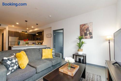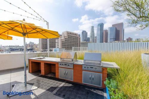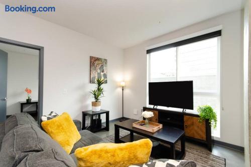 This is not a hotel. Stay in a stylish 2-bedroom apartment, fully furnished with a king bed, washer/dryer in unit, and access to a rooftop pool. Perfectly located in downtown Los Angeles, you’ll be close to major attractions—15 minutes from Universal Studios and 30 minutes from Disneyland. Walk to restaurants, bars, and markets with ease. For privacy, the full address is shared only after booking; the listed location is nearby.