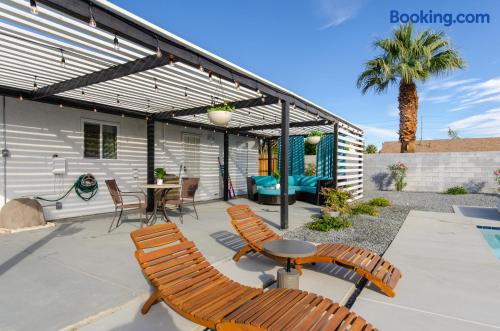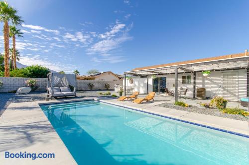 Located in a quiet neighborhood close to downtown Palm Springs, this home features luxurious outdoor space for a relaxing getaway. Enjoy the pool, fire pit, patio grilling, or work remotely with fast Wi-Fi. Whether you're playing golf at Escena Golf Club, exploring Coachella Valley Preserve, hiking Joshua Tree, or shopping on El Paseo, this is the perfect California retreat!