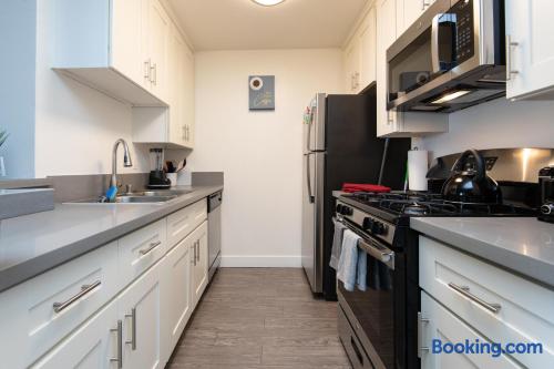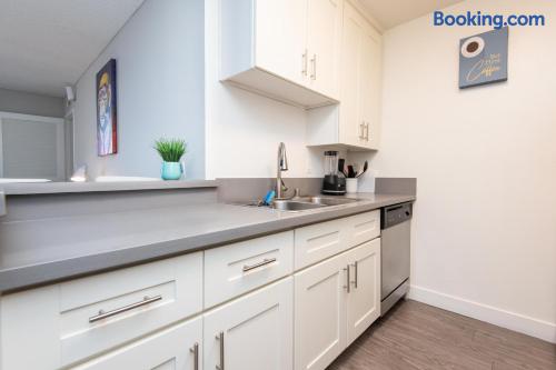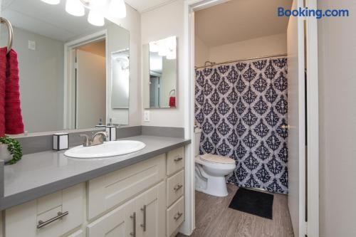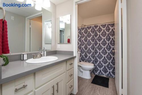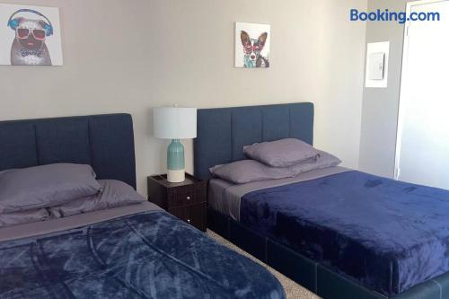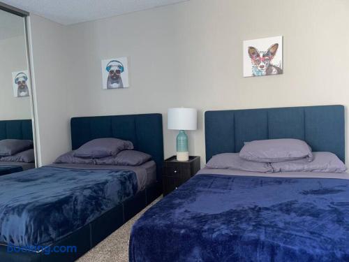 Spacious & Comfortable Stay – Read Before Booking The master bedroom features a king-size bed. The second bedroom has a queen bed and a twin bed. For extra guests, we provide one twin rollaway bed, an air mattress on request, and a couch in the living room. Please review the bed setup to ensure it meets your needs before booking. The apartment is professionally cleaned and prepared for a comfortable stay. Guest satisfaction is our priority, and we are always available to assist with any concerns. For privacy and security, the Airbnb address listed is for key pickup at a nearby hotel. The actual apartment—just a short distance away—will be shared on check-in day. We aim to accommodate all guests, but if you are highly particular or prone to frequent complaints, this may not be the right rental for you. Note on listing photos: Multiple units are available at this property. Each is designed to offer a clean, stylish, and comfortable stay. While your exact unit may vary slightly, it will meet the same quality standards.