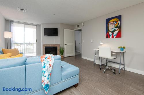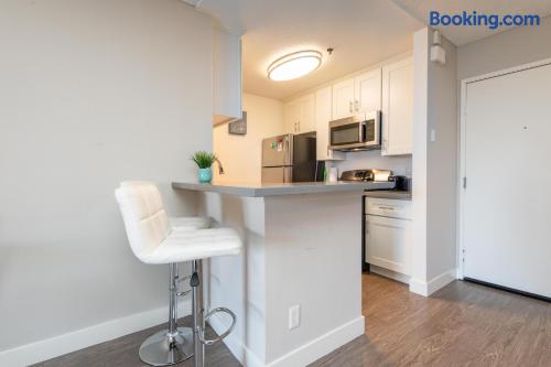 This 1-BR Hollywood apartment offers a rooftop pool and 360° views of the Hollywood Sign and Downtown. Onsite parking included. Steps from top attractions, with easy access to studios, downtown, and Universal Studios. Public transport and rideshares available for all LA destinations.
