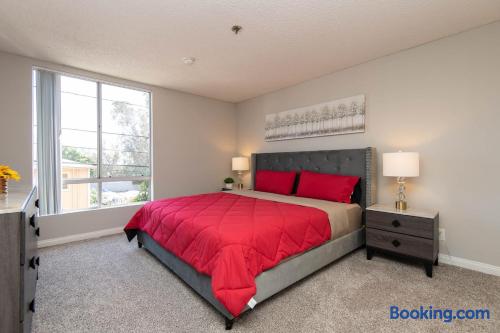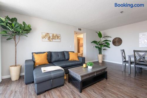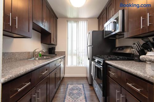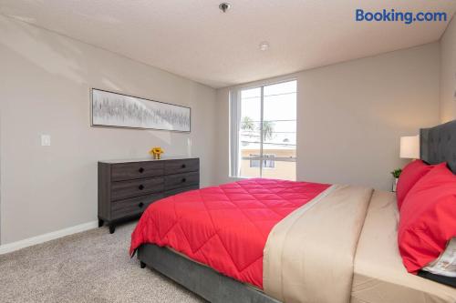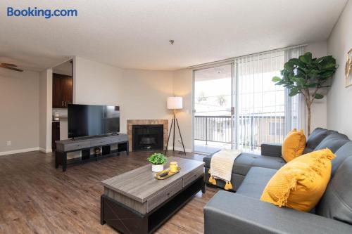 This is not a hotel. Discover Hollywood from above in this spacious 2-bedroom apartment, featuring 360° rooftop views of the city and the iconic Hollywood Sign. Enjoy modern furnishings, two smart TVs, and free on-site parking. Located in the heart of Hollywood, you’ll be steps from its most famous attractions. For privacy, the exact address is shared after booking; the listed location is only minutes away.