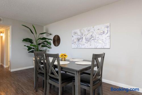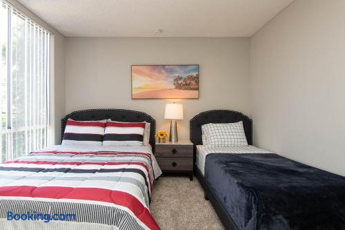 Sleeping Arrangements The main bedroom includes a king-size bed, while the second bedroom has a queen and a twin. For extra guests, two twin rollaway beds and an air mattress (upon request) are available, along with a sofa in the living area. Please review the setup to confirm it works for your group before booking. Clean & Ready for Your Stay Our apartments are professionally serviced and fully equipped to ensure a comfortable and enjoyable visit. We’re always available to assist if needed. Privacy & Check-in For security, the Airbnb address is for key collection at a nearby hotel. The exact apartment location, just minutes away, will be provided on check-in day. Guest Suitability We aim to host respectfully. If you are very detail-focused or prone to frequent complaints, this property may not be the best match. Photos & Units We manage several apartments in this building, all furnished to the same high standard. Layouts may vary slightly, but each unit is clean, comfortable, and well maintained.