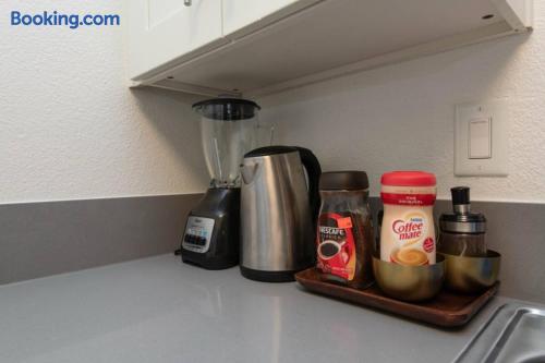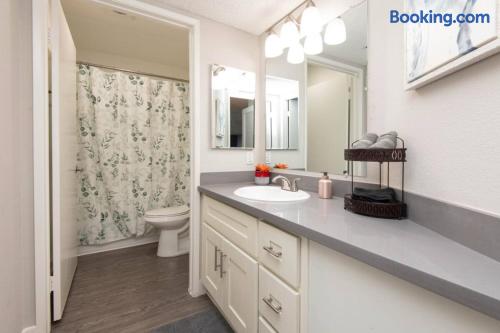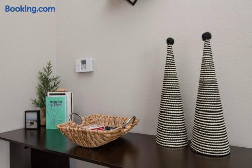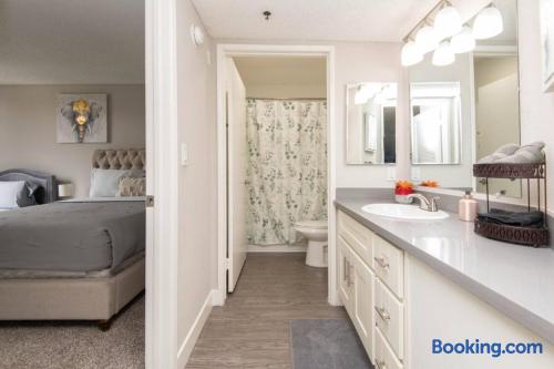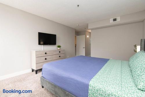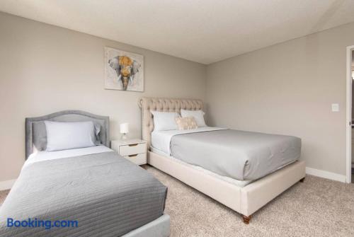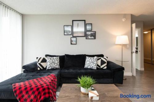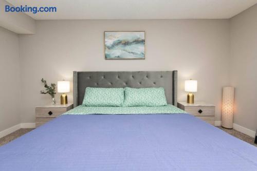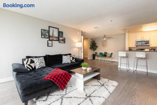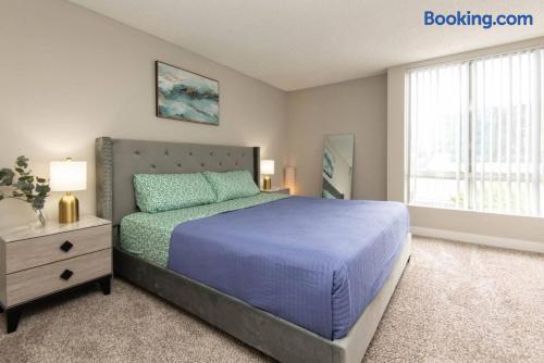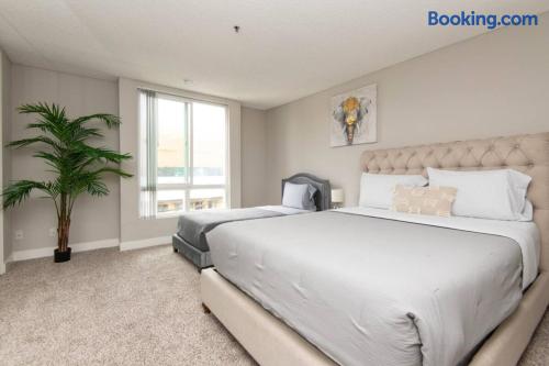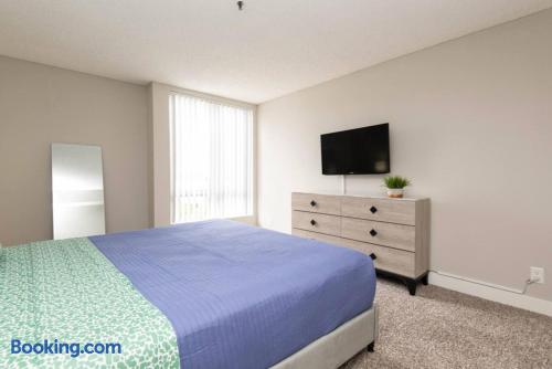Spacious & Comfortable Stay Our apartment is designed to suit groups of different sizes with a practical and flexible sleeping arrangement: Master Bedroom: King-size bed Second Bedroom: Queen-size bed + Twin bed Extra Options: Two twin rollaway beds and an air mattress (upon request) Living Room: Cozy sofa for added comfort Please review the bed setup before booking to confirm it fits your needs. Cleanliness & Guest Support The unit is professionally cleaned and prepared for every stay. We prioritize guest comfort and are always available to assist with any concerns during your visit. Privacy & Secure Check-in For safety, the address shown is for key collection at a nearby hotel. The exact apartment location, only minutes away, will be shared on check-in day. Property Details This building has multiple listings. All apartments follow the same design standard—clean, modern, and welcoming. Photos represent the overall style, though your unit may have slight variations. Guest Expectations We aim to provide a comfortable, well-kept stay and a smooth experience for all guests. If you are extremely particular or likely to raise constant complaints over small details, this may not be the right fit. We look forward to welcoming you!