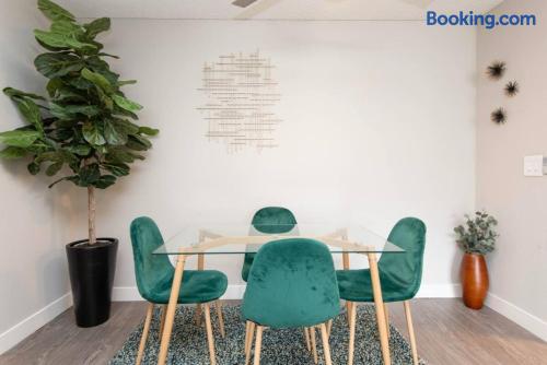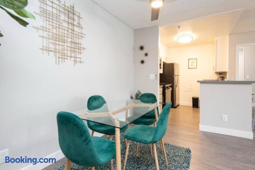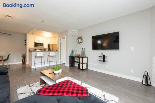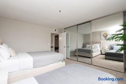 Not a Hotel – Central Hollywood 2-Bed Apartment Stay in the heart of Hollywood in this modern 2-bedroom apartment with stunning views of the Hollywood Sign. Enjoy a rooftop pool and 360° deck overlooking the city. Includes secure garage parking. Two smart TVs and walking distance to Hollywood attractions, Downtown, and Universal Studios. Exact address shared after booking; listed location is nearby