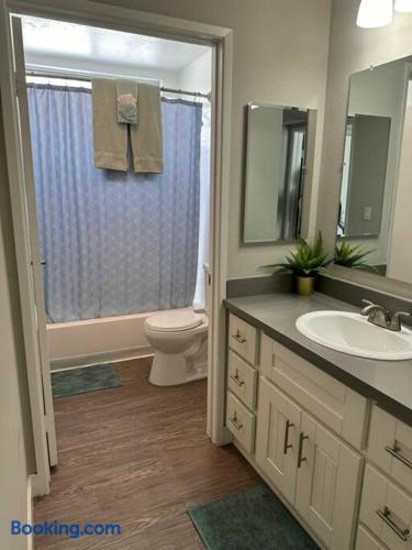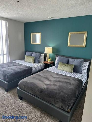 Spacious & Comfortable Stay – Read Before Booking! The first bedroom has a Queen-size bed, and the second bedroom includes a Queen bed and a Twin bed. Additional sleeping options include two twin rollaway beds, an air mattress on request, and a couch in the living room. Please review the bed configuration to ensure it meets your needs before booking. Our apartment is professionally cleaned and prepared to provide a comfortable stay. We prioritize guest satisfaction and are always available to assist with any concerns. Important: For privacy and security, the Airbnb address listed is for key pickup at a nearby hotel. The actual apartment—just a short distance away—will be shared on check-in day. We aim to accommodate all guests, but if you are highly particular or prone to frequent complaints, this may not be the right rental. Note on Photos: We have multiple listings at this property, all designed to offer a clean, comfortable stay. While your unit may vary slightly, it will maintain the same high standard.