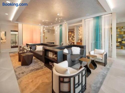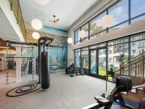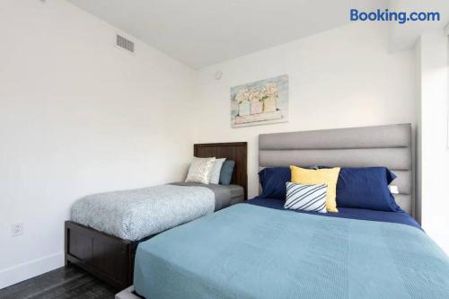 The master bedroom features a comfortable king-size bed. The second bedroom includes both a queen bed and a twin bed. Additionally, two twin rollaway beds are available in the apartment for extra sleeping space. Please note: Guests do not have access to the gym. We take pride in preparing the apartment thoroughly and strive to provide a pleasant and smooth stay. Our team is always available to assist and resolve any issues that may arise. However, if you are someone who is extremely picky or tends to focus on minor flaws, we kindly ask that you consider booking a different property.