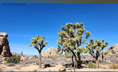 Serene Joshua Tree Getaway β Where Adventure Meets Peace π Only 10 minutes from the Joshua Tree National Park West Entrance, this desert escape is your gateway to nature, relaxation, and unforgettable memories. π΅ π Desert Comfort Redefined π Surrounded by striking mountain views and native Joshua Trees, enjoy the peaceful solitude and modern amenities. π Evenings to Remember π Sip your favorite drink on the patio, take in golden desert sunsets, and gaze up at the star-filled sky.