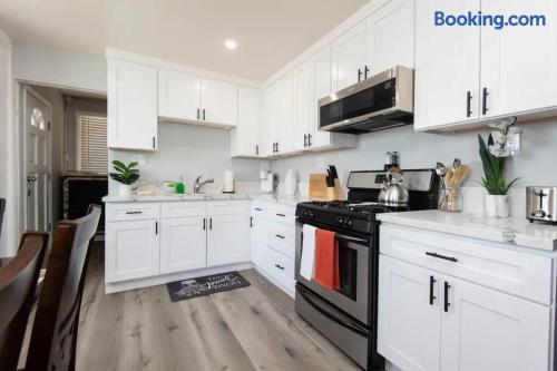 Enjoy this fully renovated 2-bedroom, 1-bath duplex just minutes from Downtown LA. Centrally located near hotspots like Disneyland, Hollywood, and Santa Monica — perfect for family trips or business stays. The spacious layout includes a King bed in one room, and a Queen, a single bed, plus extra sleeping options in the second. You'll have the entire place to yourself, with everything you need for a comfortable stay and quick access to LA’s top destinations