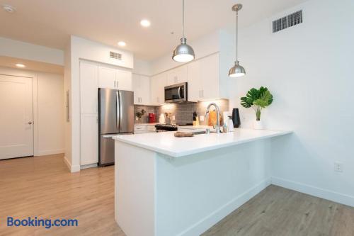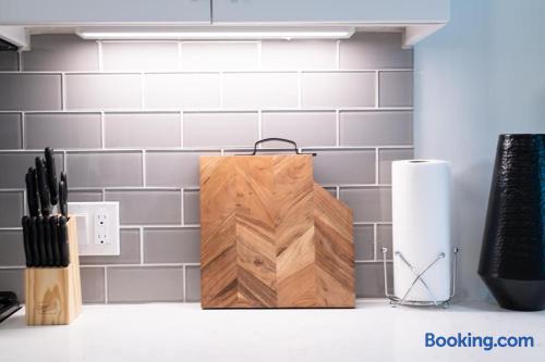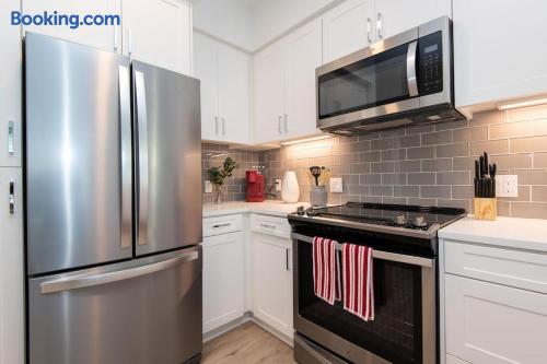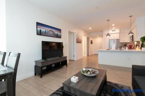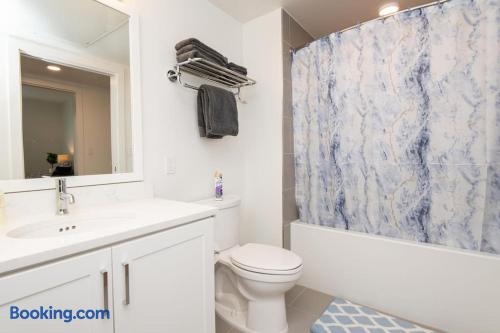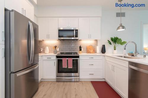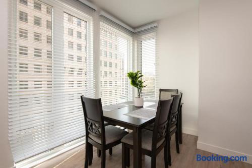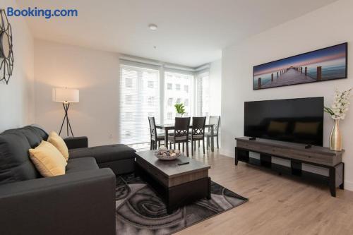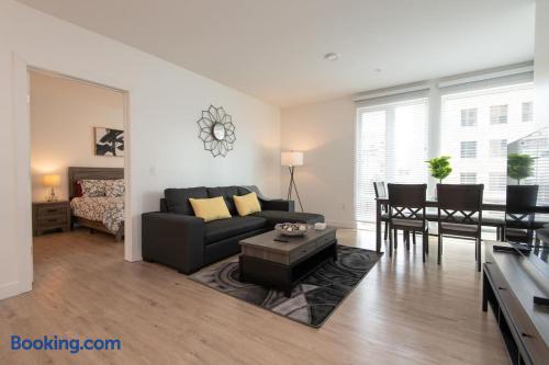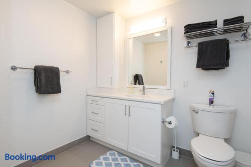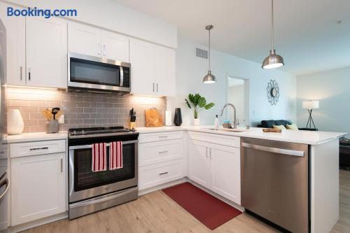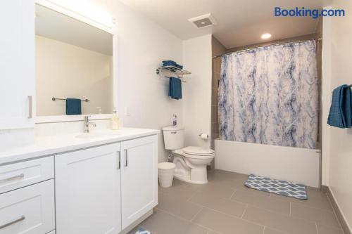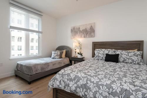 Enjoy bright natural light, stunning views, and floor-to-ceiling windows with modern finishes. Sleeping Arrangements Master: King bed 2nd: Queen + Twin bed 3rd: Queen bed Extras: 2 rollaway beds + air mattress on request Amenities Fully equipped kitchen (spices, condiments & oil included) Coffee maker, Smart TV, washer/dryer High-speed WiFi, central A/C with Nest Onsite Perks Rooftop deck, pool & jacuzzi Outdoor kitchens, gym, game room & workspaces 24/7 security Check-In Key pick-up at nearby hotel for privacy. Actual apartment address provided on check-in day. Guest Note This is a well-maintained, comfortable space. If you tend to nitpick or complain often, it may not be the best fit.